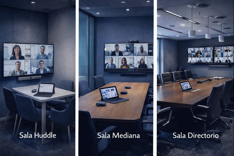 Nuestro enfoque considera el diseño del espacio, la acústica, el video, la conectividad y la experiencia del usuario, asegurando reuniones claras y sin interrupciones.